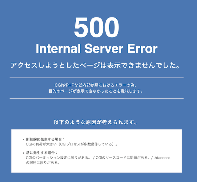 500エラーの意味は、書かれている通りの、内部エラーだ。